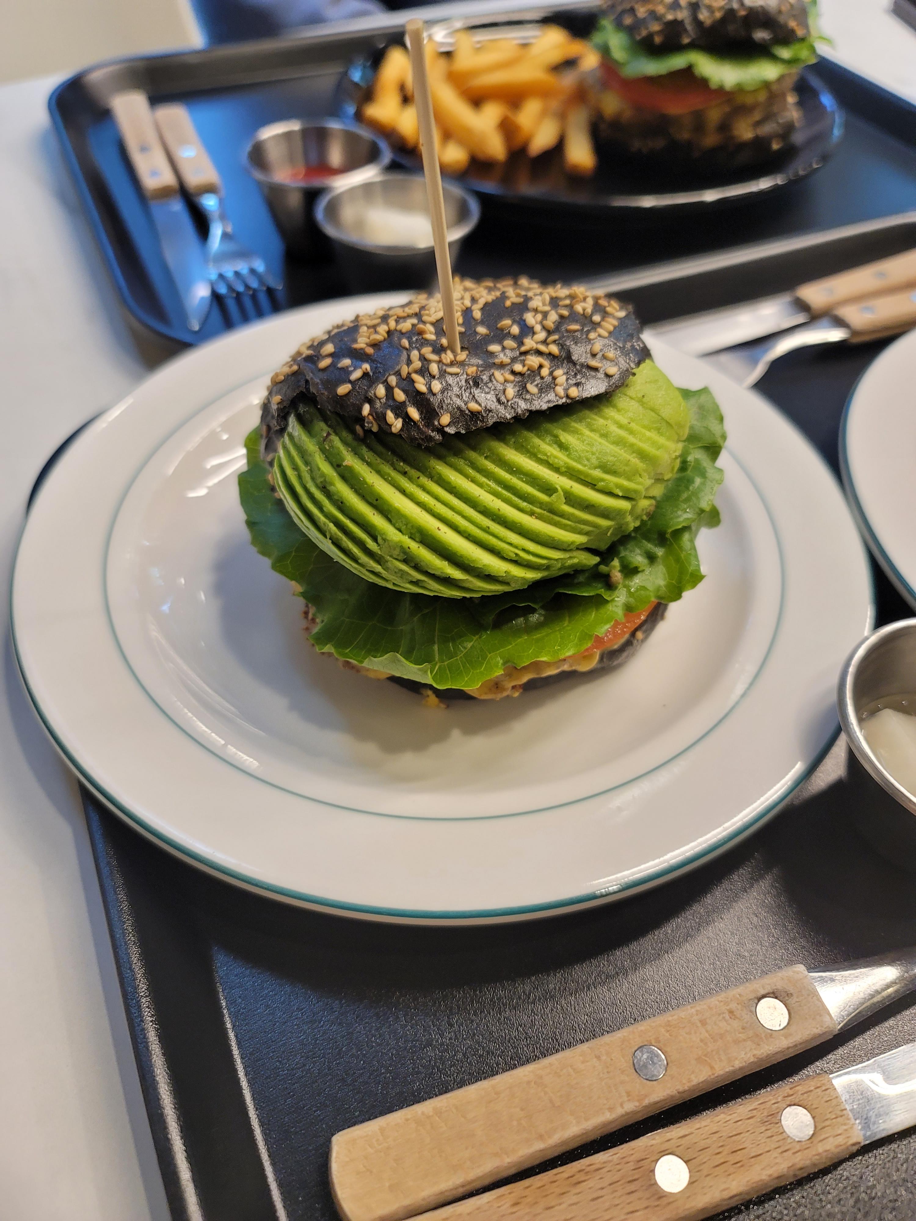 저는 아보카도 버거와 탄산수를 시켰습니다